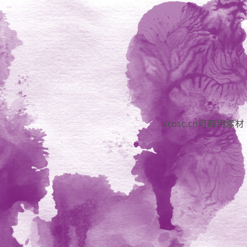 深浅不一的紫色水墨在纸面扩散,形成层次丰富的抽象纹理,边缘自然模糊,营造出神秘梦幻的艺术氛围,极具视觉表现力。