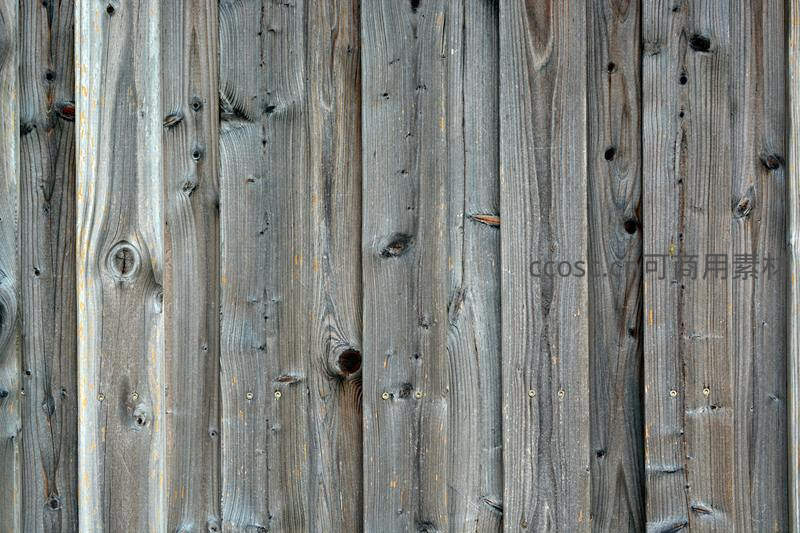 垂直排列的灰白色旧木板,表面布满天然木结与细微裂纹,呈现自然风化的沧桑感,传递质朴宁静的乡村或海滨氛围,极具装饰性。