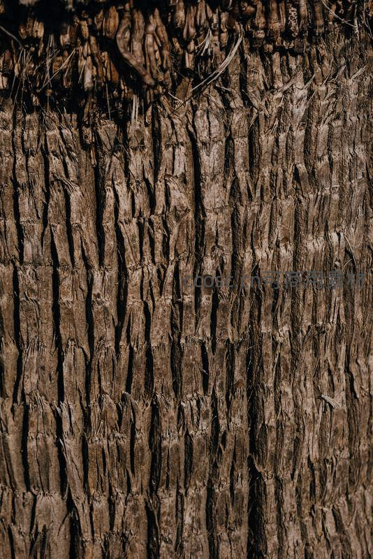 棕榈树干粗糙纹理特写,纵向沟壑分明