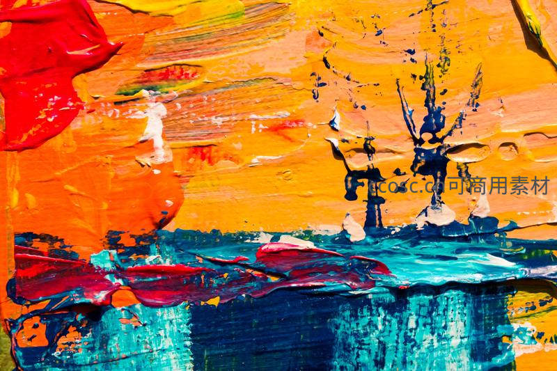 炽热色调下的抽象风景油画局部
