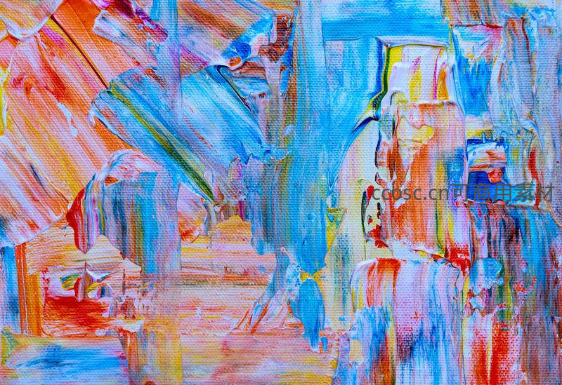 画面以梦幻的蓝色为主调,融合橙、粉、黄等暖色,通过流动的笔触和丰富的肌理,营造出如梦似幻的抽象风景,引人无限遐想。