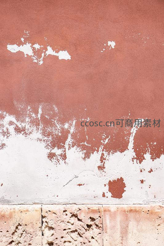 记录老墙表面油漆剥落后的层次肌理,红白相间的痕迹诉说着时光流逝,呈现一种粗粝而富有故事感的视觉质感。