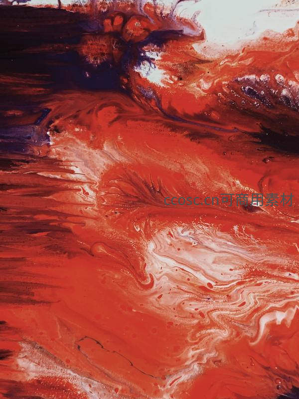 画面以浓烈的红色与深邃的黑色交织,形成如熔岩般翻滚的动态纹理,白色点缀其间,营造出强烈的视觉张力和神秘感。