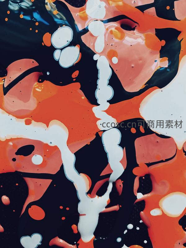 橙色与黑色的颜料在画布上自由流淌,形成充满张力的抽象图案,白色点缀其间,营造出强烈的视觉冲击力和现代艺术感。