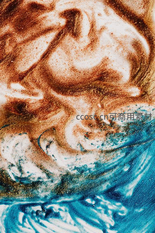 浓郁的咖啡色与清新的蓝白色液体在杯中相遇,相互缠绕、融合,创造出如大理石纹路般的奇幻图案,是味觉与视觉的双重享受。