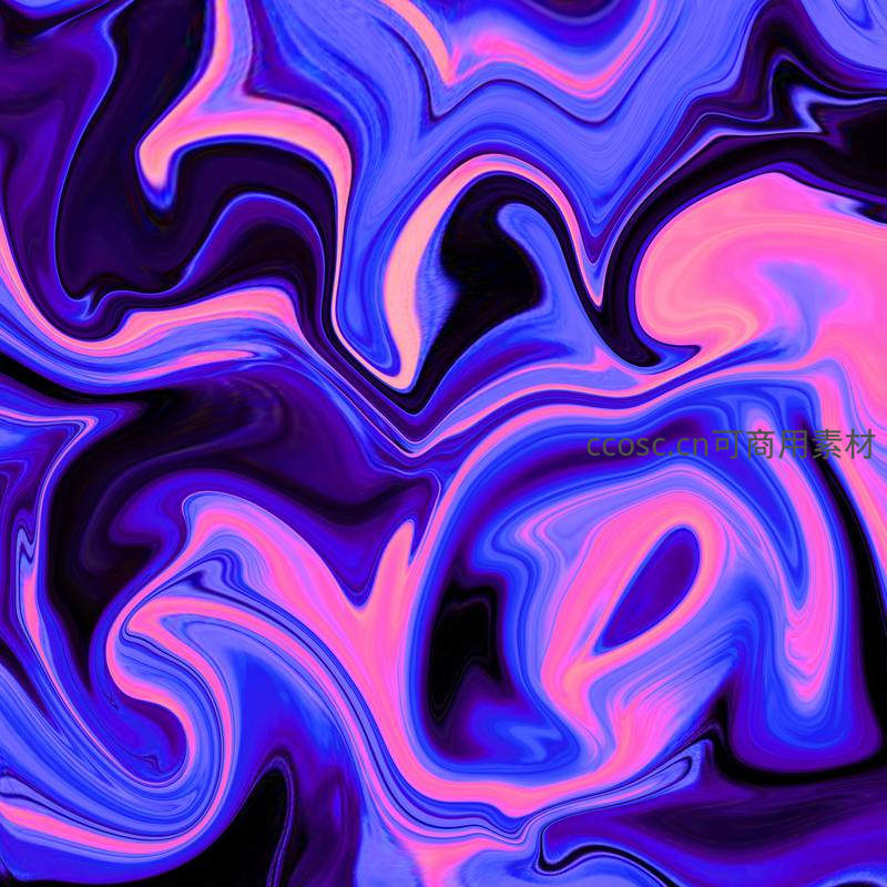 深蓝、亮紫与粉红的流体在黑色背景下相互缠绕、旋转,构成如宇宙星云或液态金属般的动态漩涡,充满科幻与未来感。