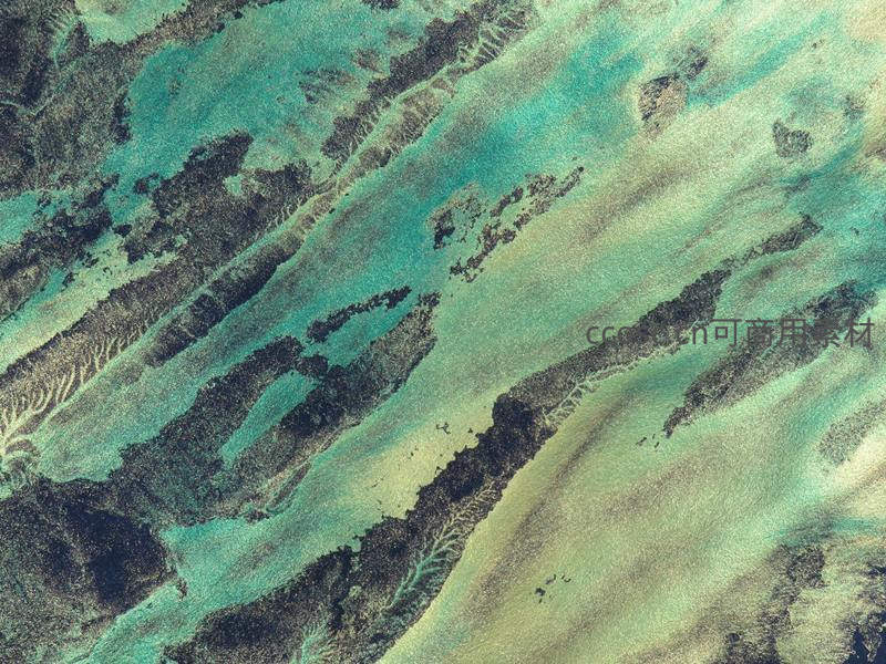 从高空俯瞰,碧绿如翡翠的水域与深褐色的滩涂交织成一幅天然画卷,独特的纹理和色彩展现了大自然鬼斧神工般的地貌形态与生态之美。