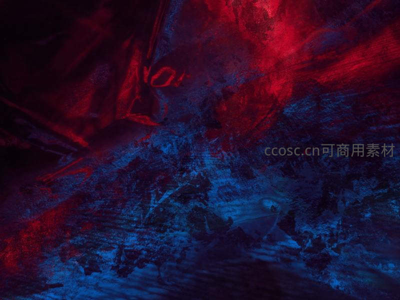 炽热的红色与冷峻的蓝色在黑暗中激烈碰撞,传达强烈的情感冲突与戏剧性氛围,极具视觉感染力。