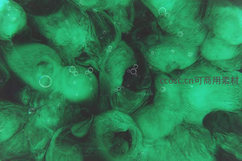 深邃的翠绿色液体中,无数微小气泡如星辰般悬浮,流动的纹理与光影交织,营造出梦幻般的微观宇宙,充满神秘与诗意。