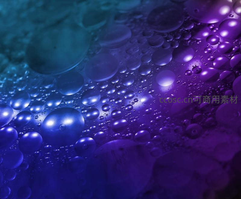 无数晶莹剔透的液滴在蓝紫渐变的背景中闪耀,如同夜空中散落的星辰,表面反射着柔和光芒,营造出宁静而梦幻的视觉体验。