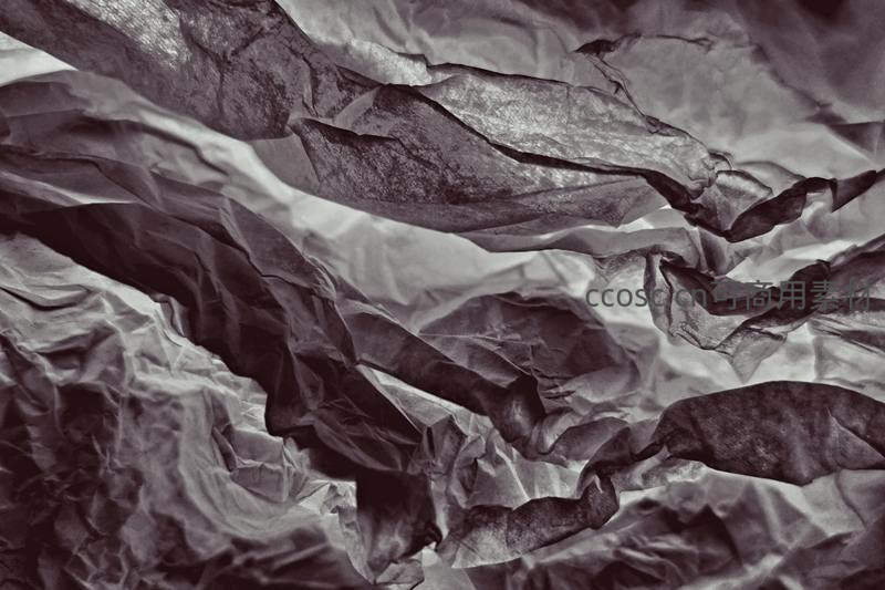 高对比度的黑白画面捕捉了纸张层层叠叠的褶皱细节,光影交错间展现朴素而富有层次的材质美感。