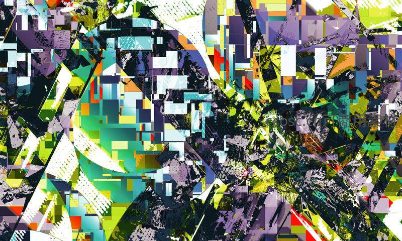 这幅作品融合了像素化的块状结构与流动的色彩线条,绿色与紫色的激烈碰撞,营造出一种充满科技感和未来主义的抽象视觉体验。