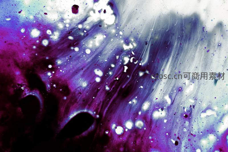 仿佛置身于遥远星系,紫色与白色的光点和流体在虚空中漂浮、旋转,营造出浩瀚无垠且充满想象力的宇宙幻境。