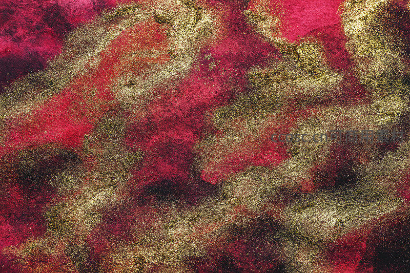 浓郁的红色与高贵的金色在画面上自由流动、碰撞,形成丰富的层次和肌理,散发出强烈的现代艺术气息。