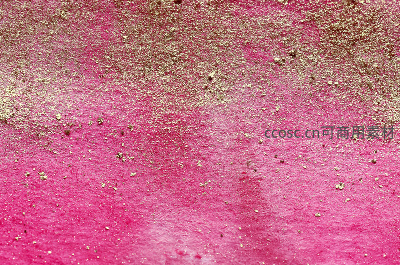 微距镜头下,金色粉末如星尘般洒落在柔和的粉红色表面上,光影交错间展现出细腻的质感与浪漫的氛围。