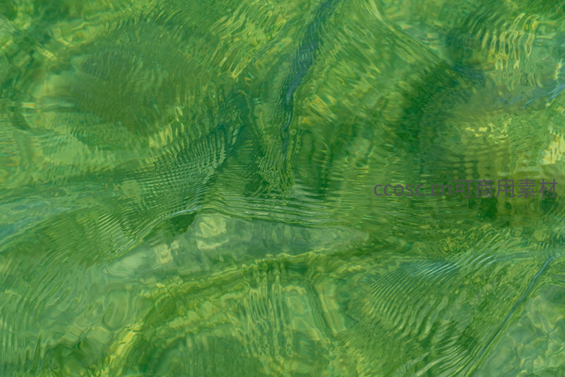 碧绿色的水体表面因微风泛起层层涟漪,光线穿透并折射出斑驳陆离的图案,充满生机与自然韵律。