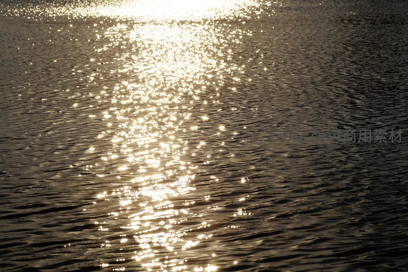 夕阳西下,金色阳光倾泻在平静的湖面上,水波荡漾,反射出点点碎金般的光芒,温暖而富有诗意。