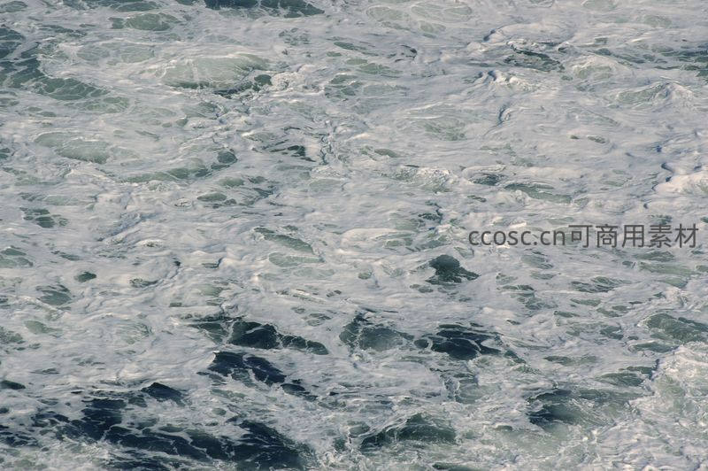 汹涌海浪翻滚,白色泡沫如雪铺满深蓝海面