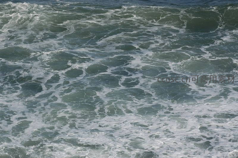 碧绿色的海面因强烈扰动而沸腾,无数细小的浪花和水沫相互碰撞、融合,形成一张充满力量感和流动感的视觉网络。