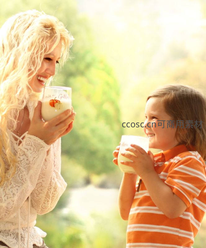 阳光下母女共享牛奶,笑容灿烂如花