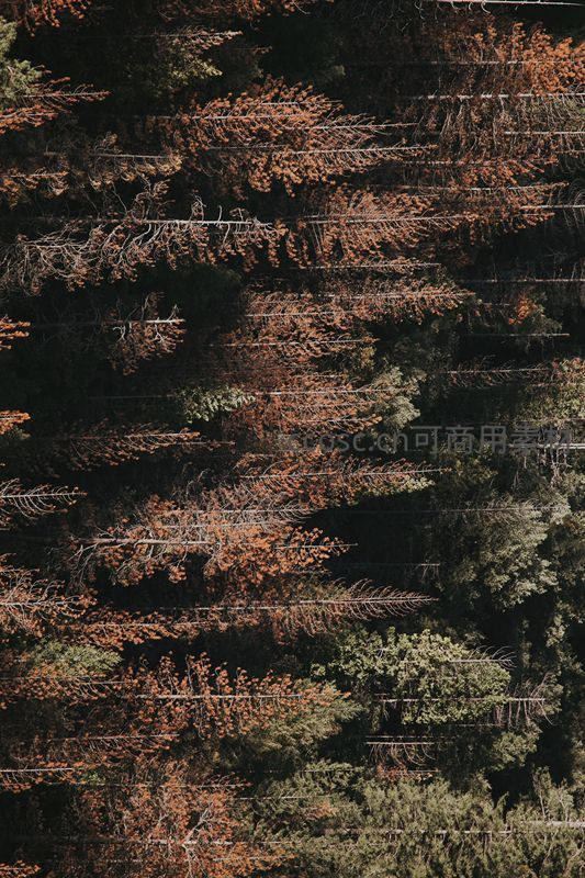 俯瞰秋日森林枝叶交错纹理