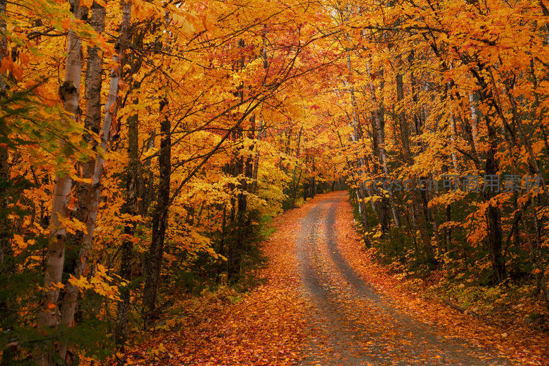 金黄秋叶铺满林间小径,宛如童话般的森林秘境