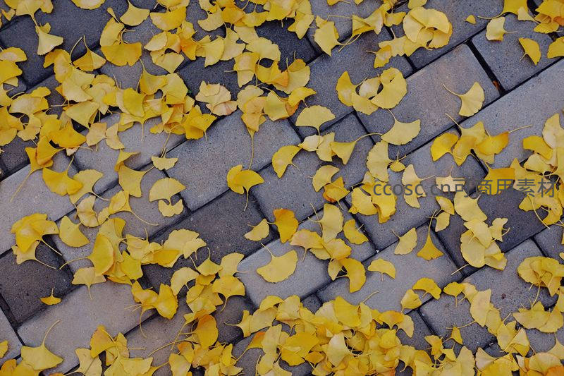 金黄色的银杏叶散落在灰色砖石小径上,形成鲜明色彩对比,微风拂过,落叶轻舞,记录下城市角落里最温柔的秋日瞬间。