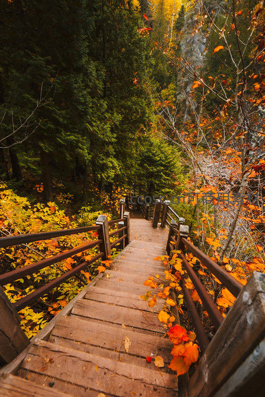 秋林栈道:木质阶梯引领深入斑斓山谷秘境