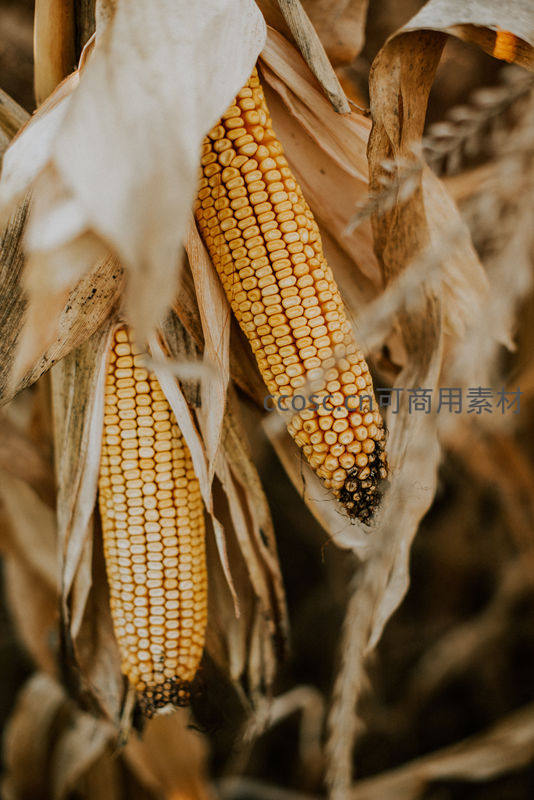 田间成熟玉米特写丰收景象