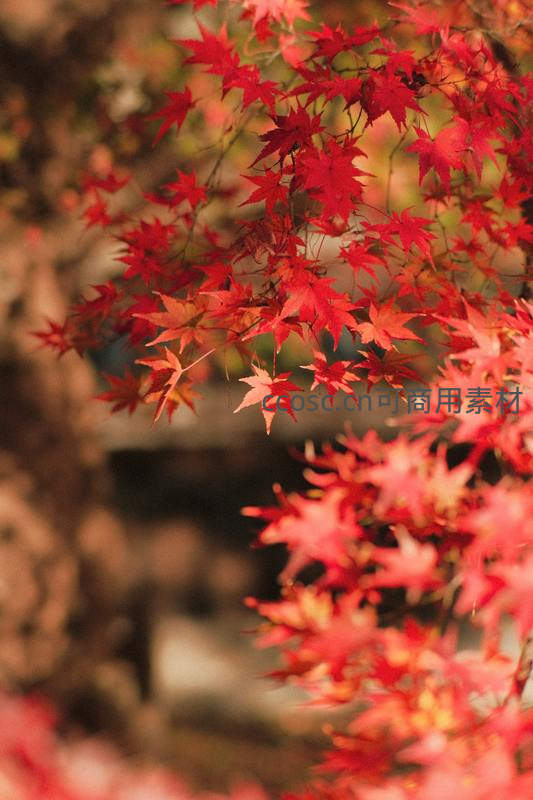 深秋红枫叶特写如火焰般绚烂