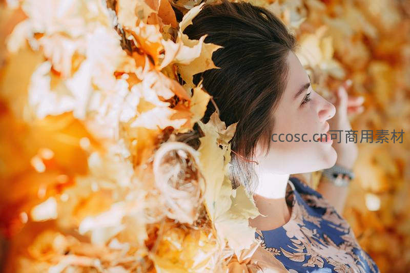 秋叶环绕侧颜,温柔凝望远方