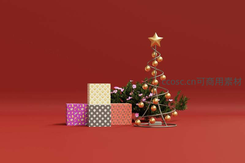 简约金属圣诞树配彩礼盒装饰