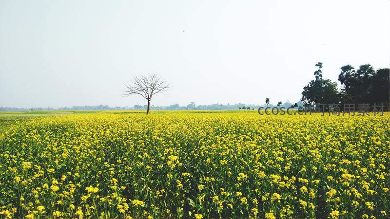 金黄油菜花海中孤树静立