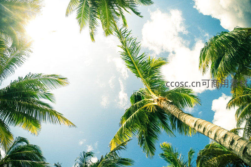 仰望椰林冲云霄,阳光洒落绿意浓