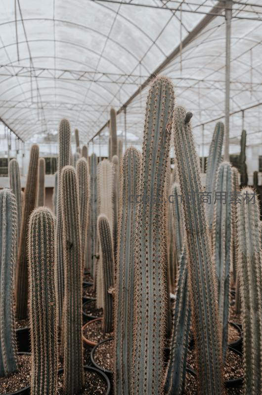 温室中高耸仙人掌的静谧景象