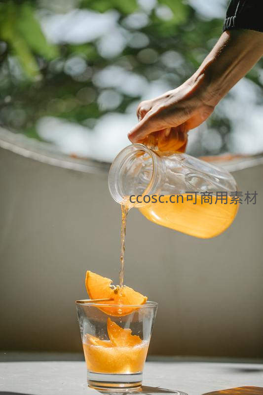 倾倒橙汁的动感瞬间与果香四溢