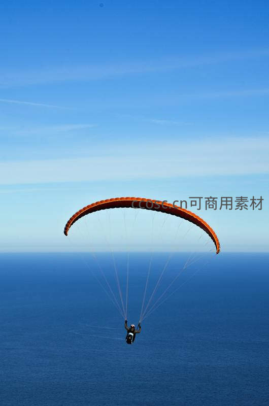 滑翔伞翱翔于碧海蓝天之上自由飞翔