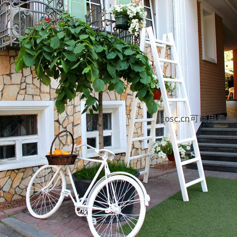 白色单车与绿植装饰的欧式庭院一角