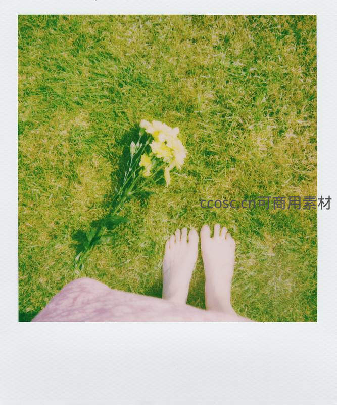 赤脚踩在草坪上与花朵相伴