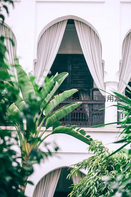 绿意盎然中的摩洛哥风格拱窗建筑