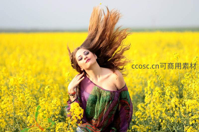 少女在油菜花海中飞扬秀发