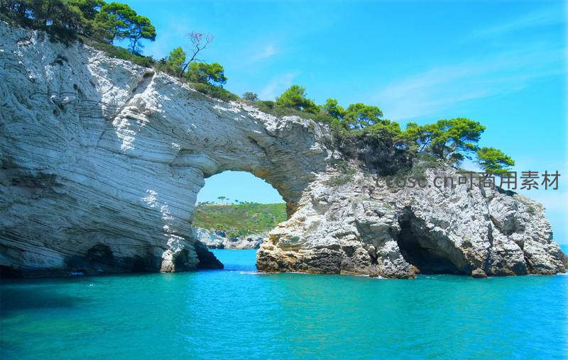 碧海蓝天下的天然石拱门