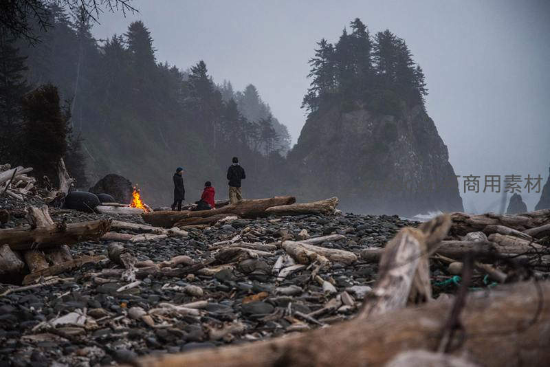 雾中海岸篝火旁的静谧时光