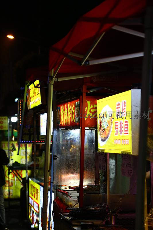 夜市炭烤罗非鱼摊位灯火通明