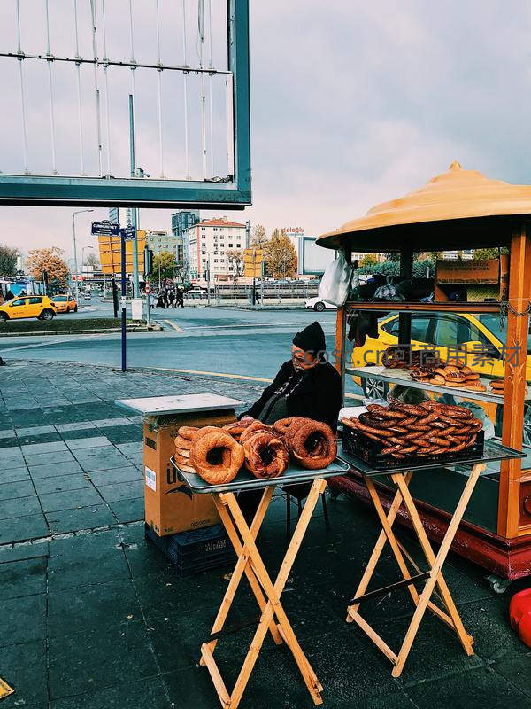 桥下卖环形面包的土耳其街头小贩