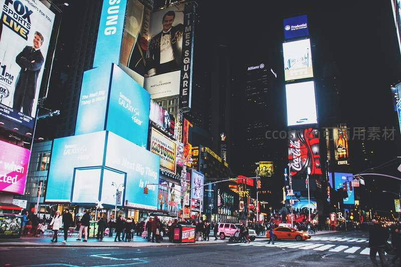 纽约时代广场璀璨夜景霓虹闪烁