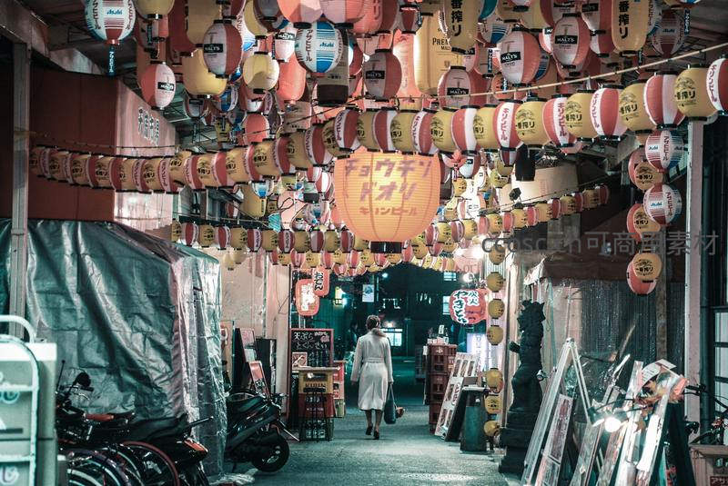 灯笼长廊下的日式小巷