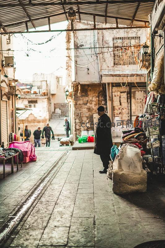 中东传统集市石板路上的商贩日常