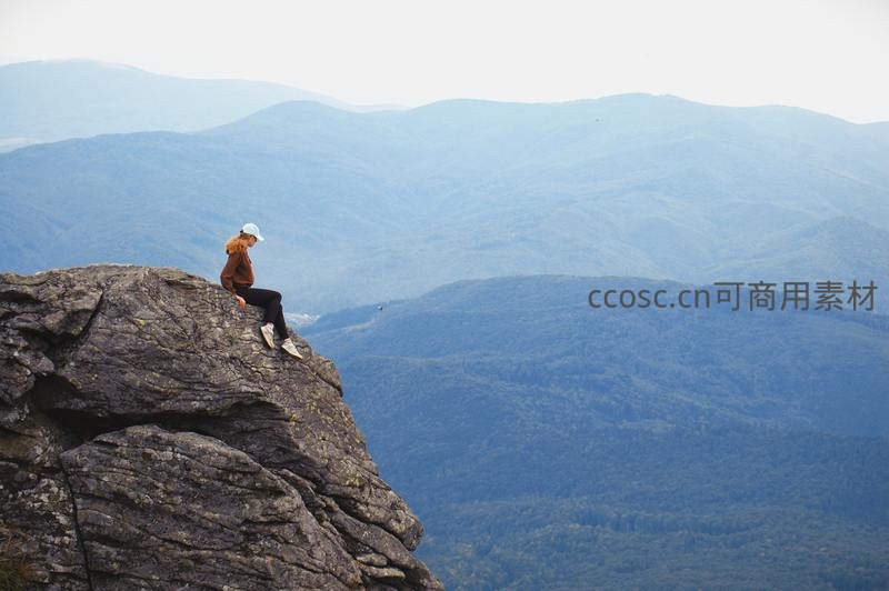 孤坐悬崖俯瞰连绵群山