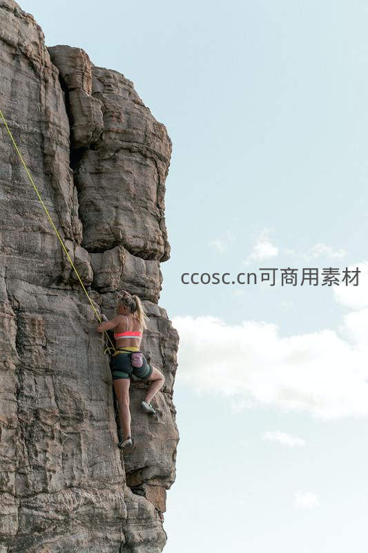 女子攀岩挑战陡峭岩壁
